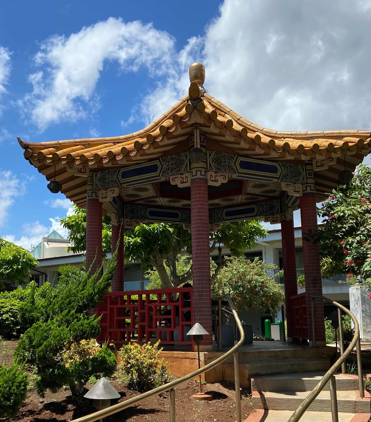 In the oriental garden in the secure gate area at Honolulu’s airport.